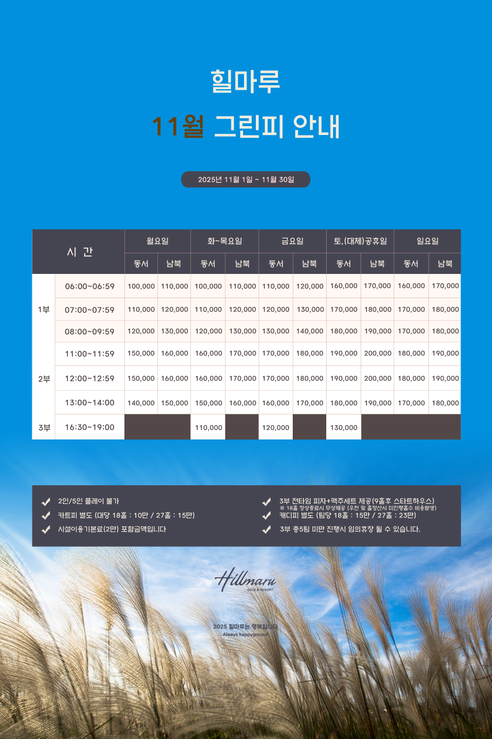 2025 힐마루 11월 그린피 안내