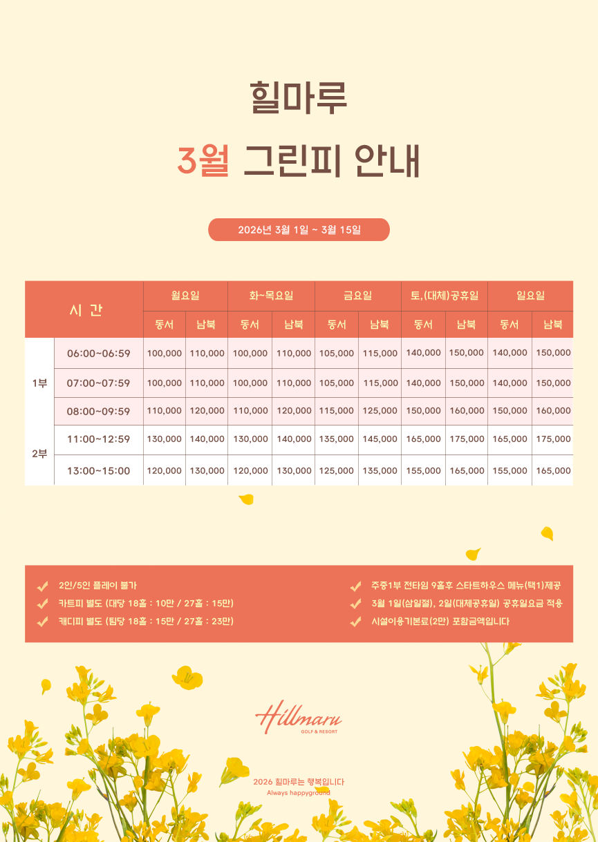 2026 힐마루 3월 그린피 안내
