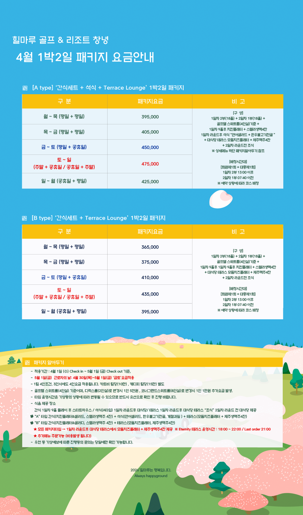 힐마루 4월 1박2일 패키지